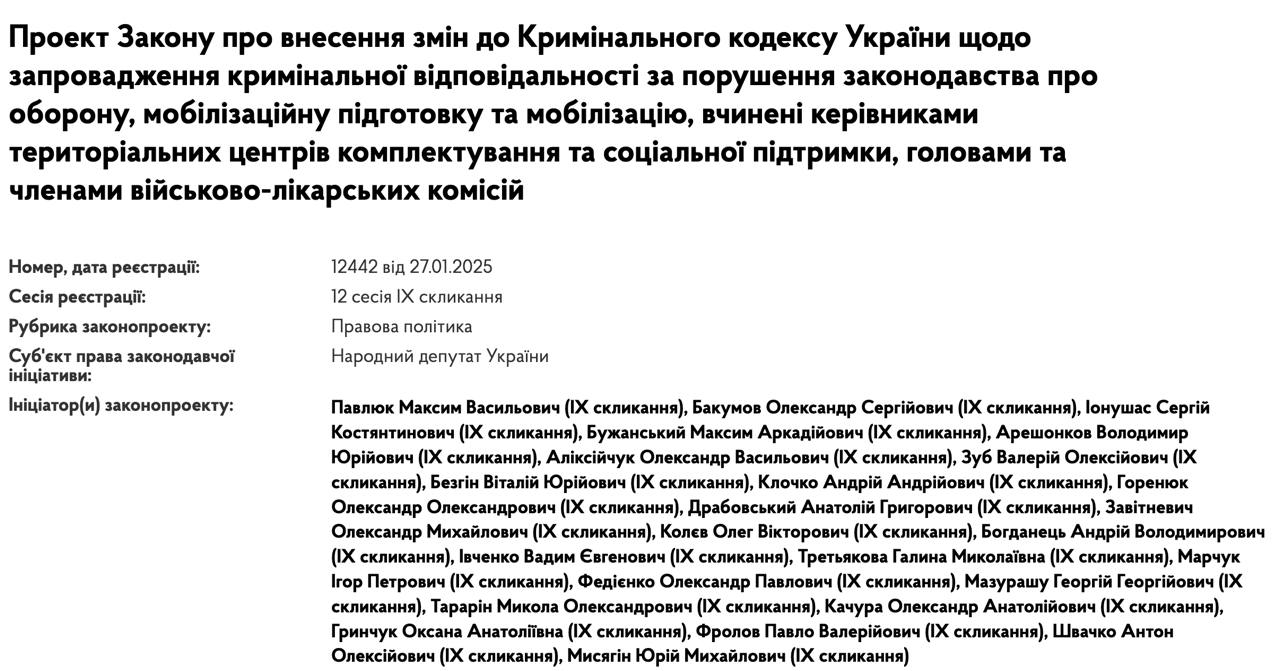 13.17 В Раде зарегистрировали законопроект об ответственности представителей ТЦК и ВВК за нарушение порядка мобилизации, сообщает нардеп Бужанский.