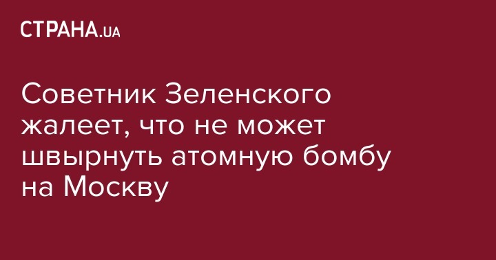 "Депутат Верховной Рады Украины от партии "Слуга народа" Никита Потураев выразил сожаления по поводу того, что Украина не может "швырнуть" атомную бомбу на Москву.