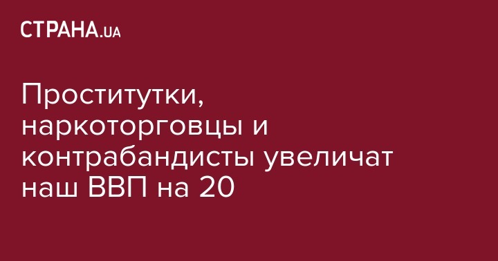 Учитывая размах нашей проституции, наркоторговли ( которую всю крышует полиция) , торговли оружием ( особенно когда идет АТО) и тотальной контрабанды,( с которой в стране борются только два человека - Саакашвили и Москаль) , мы вполне может увеличить наш ВВП на 18-20%.