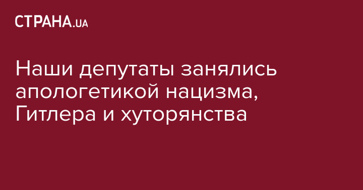Словом, подобного рода "постановлениями" наши депутатствующие элементы фактически занимаются апологетикой нацизма, Гитлера и хуторянского самозванства, а также лишний раз позорят страну, поскольку это далеко не самая лучшая страница истории Украины.
