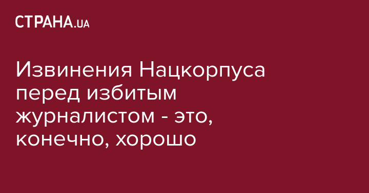 Те, що Нацкорпус розшукав «героїв» та змусив вибачитися перед журналістом - це позитив. Але вибачення не звільняють від відповідальності за напад на журналіста! Національна поліція має встановити всі обставини злочину і роль кожного з нападників. Брутальна атака на журналіста має вагомо каратися, а не виправдовуватися.