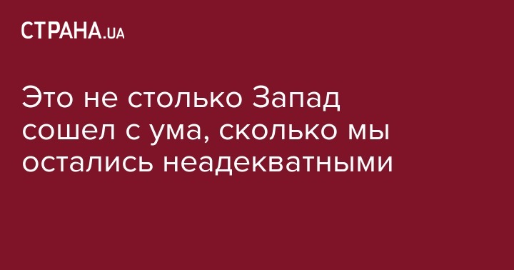 Это не столько Запад сошёл с ума, сколько мы сами остались в старых неадекватных реалиях и убеждениях. Для фанатов рывка на Запад: прорываться нужно было ещё после первого Майдана. Сейчас все намного сложнее. Окно возможностей закрылось в 2008 с началом глобальной рецессии.