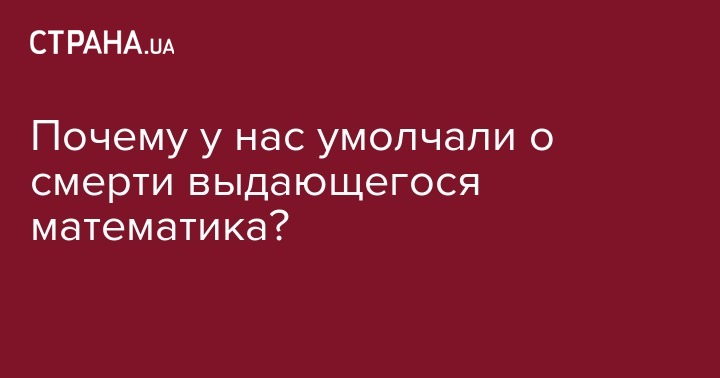 Просто поразительно, что на у нас в стране практически никто не помянул недавно умершего выдающегося математика Юрия Зелинского, заведующего отделом комплексного анализа и теории потенциала Института математики НАНУ, автора многочисленных научных трудов. Может это потому, что ученый с мировым именем ехал в Польшу на научную встречу, а польские пограничники не хотели его пропускать, в результате чего у него случился сердечный приступ? Хотя в кармане было письмо института математики с просьбой о содействии в пересечении границы. Да, не вписываются такие факты в идеологему нынешней власти...