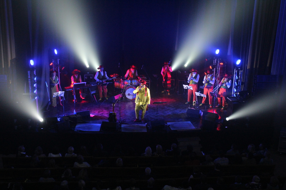 То, что происходит на сцене во время выступления Jazz band Александра Меламуда, сложно назвать обыкновенным джазовым концертом. Это театрализованное действо. Тут все: и вокал, и музыка, и даже танцы. Меламуд не просто поет – декламирует, магнетизирует зал так, будто играет моноспектакль.