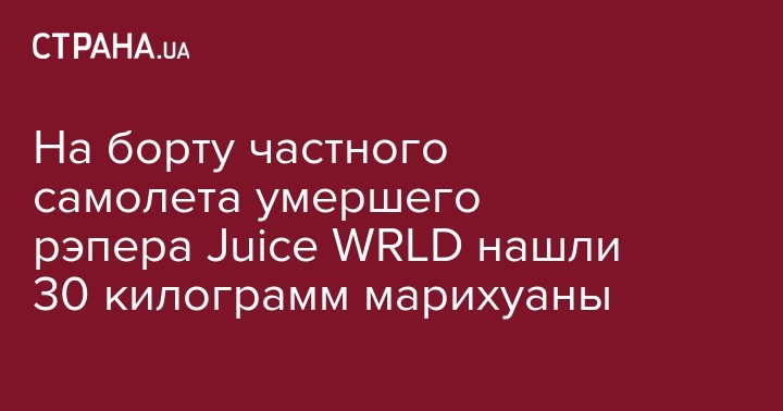 В частном самолете рэпера Juice WRLD, у которого пошла кровь горлом прямо в аэропорту и он умер, обнаружили более 30 килограммов марихуаны. Об этом пишет портал TMZ.