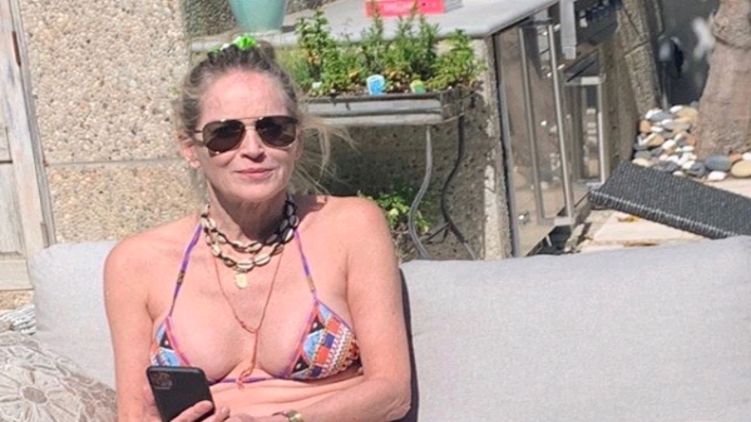 На седьмом десятке Шэрон Стоун показала тело в крохотном купальнике и голову в шлеме