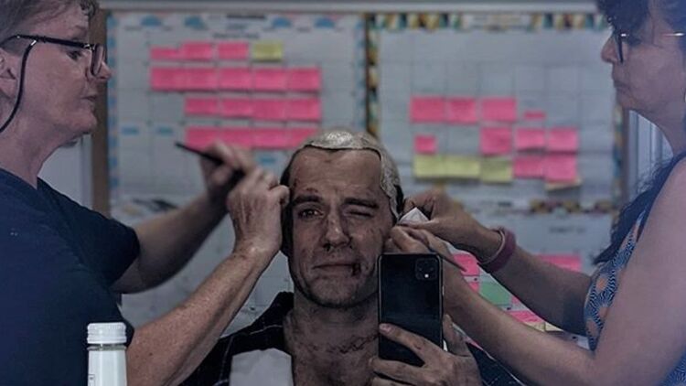 На фото актер сидит перед зеркалом в кресле гримеров, где ему убирают "прическу" Геральта из Ривии. По его словам, избавляться от нее не очень приятно. Также он добавил, что два раза в неделю всех актеров тестируют на коронавирус.
