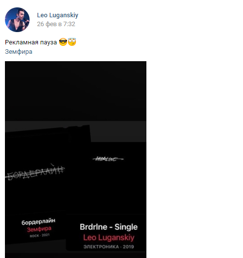Об этом он написал на своей странице в "ВКонтакте" 26 февраля - в день выхода альбома Земфиры.