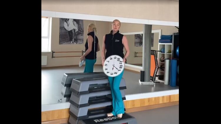 Российская танцовщица Анастасия Волочкова показала, как она вешает часы в тренировочном зале на стену без лестницы. Для этого она использовала свои навыки балерины.