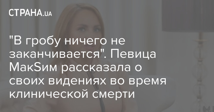 Российская певица МакSим (настоящее имя Марина Абросимова) рассказала ведущей Ксении Собчак о том, что пережила во время клинической смерти. По словам исполнительницы, она попала в иную, потустороннюю реальность.