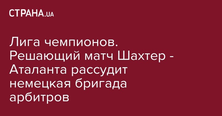 Лига чемпионов. Решающий матч Шахтер - Аталанта рассудит немецкая бригада арбитров
