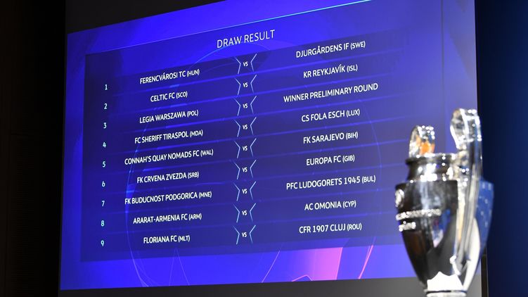 УЕФА провел жеребьевку матчей первого отборочного раунда Лиги чемпионов. Все пары