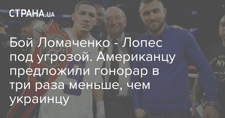 Бой между нашим чемпионом Василием Ломаченко (14-1, 10 КО) и американским боксером Теофимо Лопесом (15-0, 12 КО) под угрозой отмены. Причина в том, что американец считает маленьким гонорар, который может получить за этот поединок.