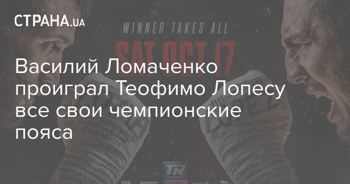 В ночь на воскресенье, 18 октября в Лас-Вегасе (США) состоялся бой за звание абсолютного чемпиона мира лёгком весе между американцем Теофимо Лопесом и украинцем Василием Ломаченко.