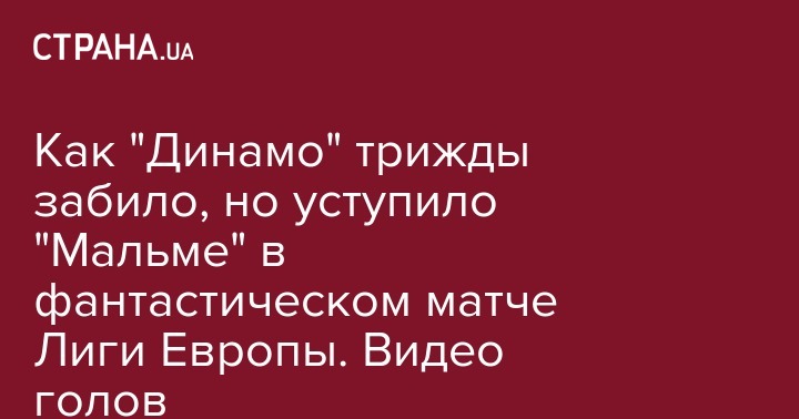 В четверг, 29 ноября, состоялась игра 5-го тура группового этапа Лиги Европы между киевским "Динамо" и "Мальме" из Мальме.