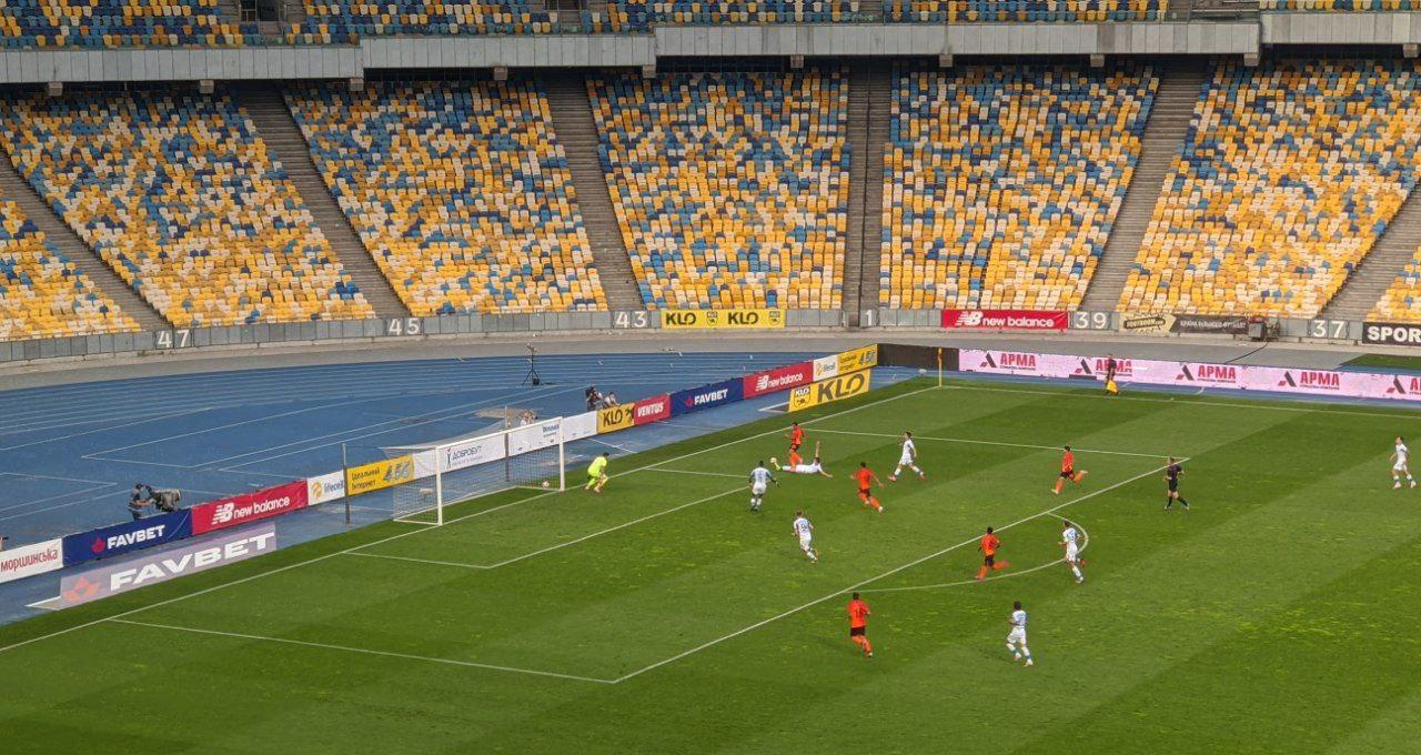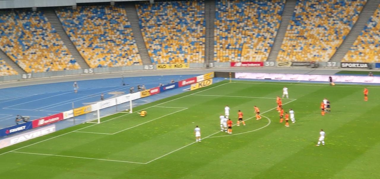 45 Угловой у ворот "Динамо". Игроки "Шахтера" просили пенальти, но после консультации с арбитром VAR пенальти Виталий Романов ставить не стал.