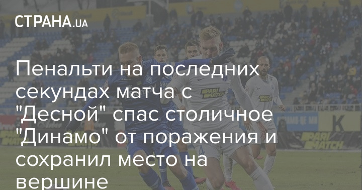 Пенальти на последних секундах матча с "Десной" спас столичное "Динамо" от поражения и сохранил место на вершине