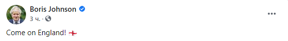 Борис Джонсон своим постом в соцсети поддержал английских футболистов. Фото: facebook.com/borisjohnson