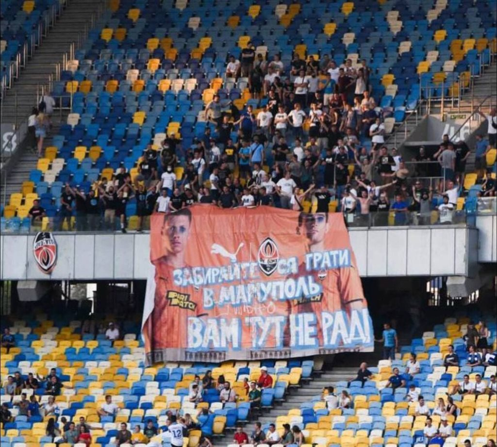 "Уезжайте играть в Мариуполь. Вам тут не рады", - говорится в сообщении на баннере.