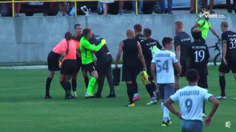 Главный тренер "Олимпии" Александр Кулик был недоволен тем, как судили матч. По завершению игры он побежал к рефери и накинулся на него с кулаками. В конце-концов мужчин разняли.