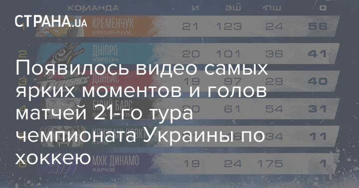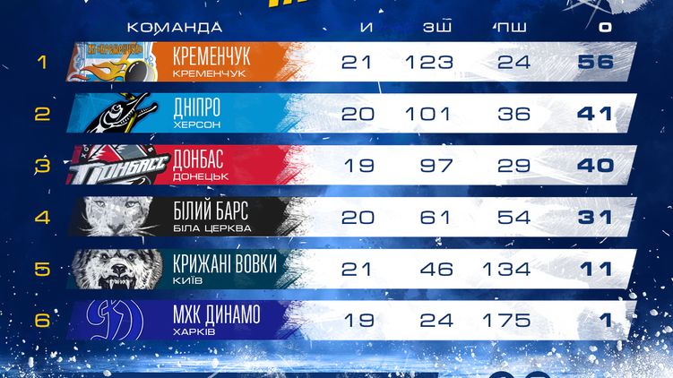Турнирная таблица чемпионата Украины по хоккею Украинской хоккейной лиги - Париматч после 21 тура, фото: uhl.ua
