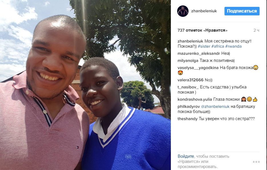 В 2017 году спортсмен съездил в Руанду. где познакомился с сестрой по отцу.