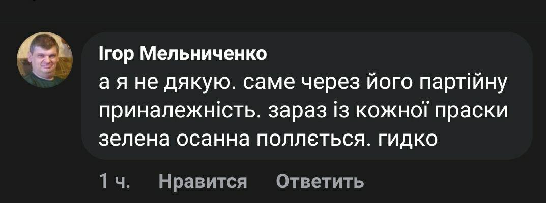 Похожие комментарии оставляют под поздравительным постом Петра Порошенко в Facebook. Беленюка упрекают в том, что он "зеленой ориентации".