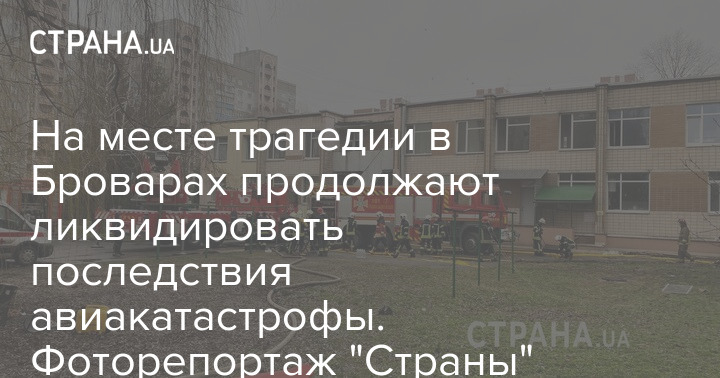 На місці трагедії у Броварах, де вертоліт впав поряд із дитячим садком, продовжують ліквідувати наслідки авіакатастрофи.