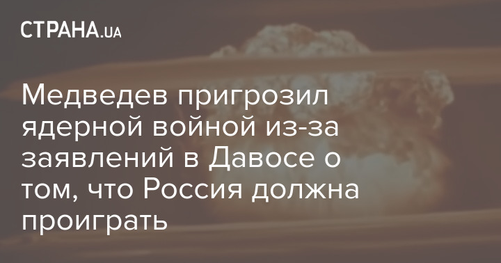 Заступник голови радбезу РФ Дмитро Медведєв пригрозив ядерною війною "недорозвиненим політичним тусовщикам" через висловлювання на форумі в Давосі про те, що Росія має програти у війні проти України.