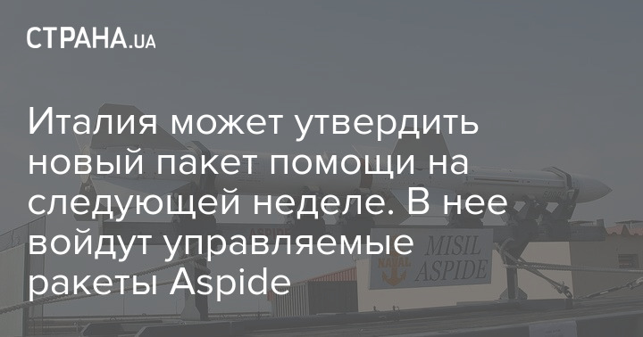 Уряд Італії прийме шостий пакет військової допомоги Україні наступного тижня. До нового пакету зброї, який буде представлено у спеціальному парламентському комітеті з безпеки та засекречено, увійдуть керовані ракети Aspide.