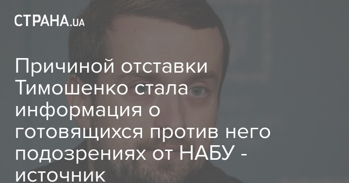 За даними джерел "Страни", безпосередньою причиною відставки Кирила Тимошенко з посади заступника голови Офісу президента стала отримана ним та керівництвом ОП інформація про підготовку проти Тимошенка підозр від НАБУ щодо низки кримінальних справ про корупцію.