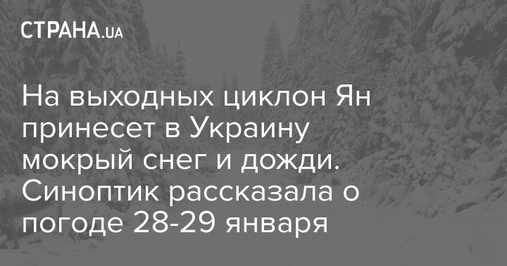 У суботу, 28 січня, циклон на ім'я Jan принесе мокрий сніг та дощі у південні регіони України. А, в неділю, 29 січня, Jan зрушить на Приазов'я, тож опади поширяться ще на східні області та частину Дніпропетровщини.
