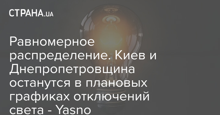 Рівномірний розподіл. Київ та Дніпропетровщина залишаться у планових графіках відключень світла - Yasno