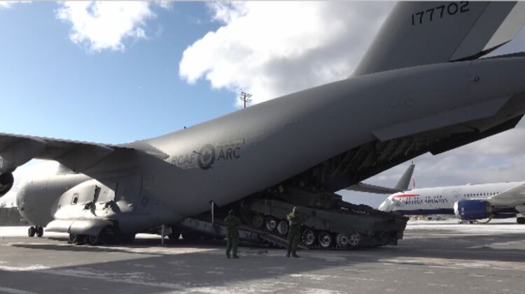 Канада відправила в Україну свій перший танк Leopard 2. Бойову машину завантажили у військово-транспортний літак C-17.