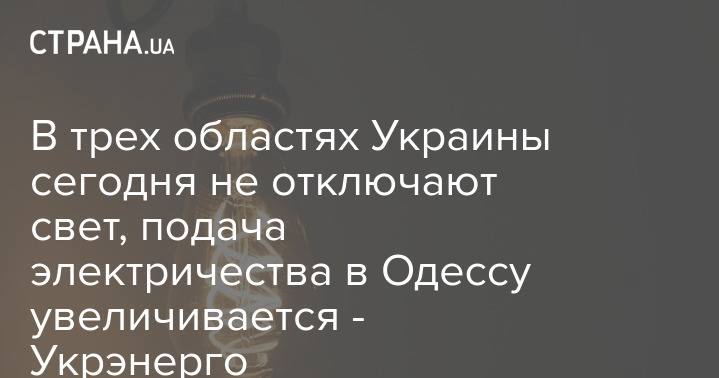 У трьох областях України сьогодні не відключають світло, подача електрики до Одеси збільшується - Укренерго