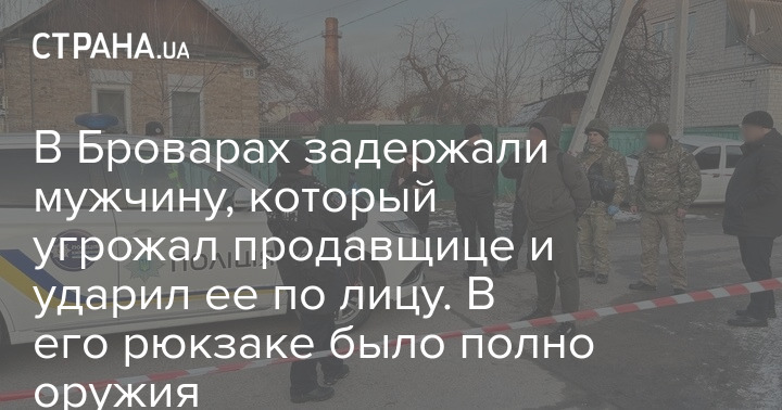 У Броварах затримали чоловіка, який погрожував продавчині та вдарив її по обличчю. У його рюкзаку було повно зброї