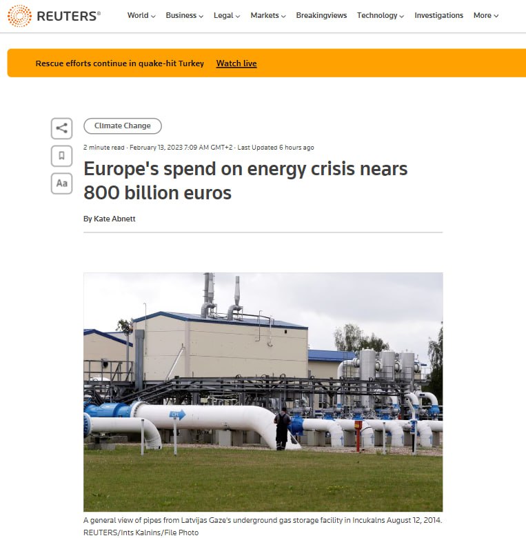 Витрати Європи на боротьбу з енергетичною кризою наближаються до 800 млрд. євро.