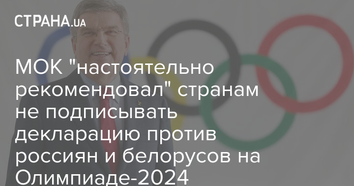 Міжнародний олімпійський комітет "настійно рекомендував" коаліції країн, яка виступає проти участі Росії та Білорусі в Олімпіаді в Парижі, не підписувати спільну декларацію з вимогою про недопуск спортсменів до Ігор 2024 року.