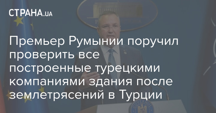 Після руйнівних землетрусів у Туреччині та Сирії прем'єр-міністр Румунії Ніколає Чуке наказав перевірити всі будівлі, які звели в країні турецькі компанії.