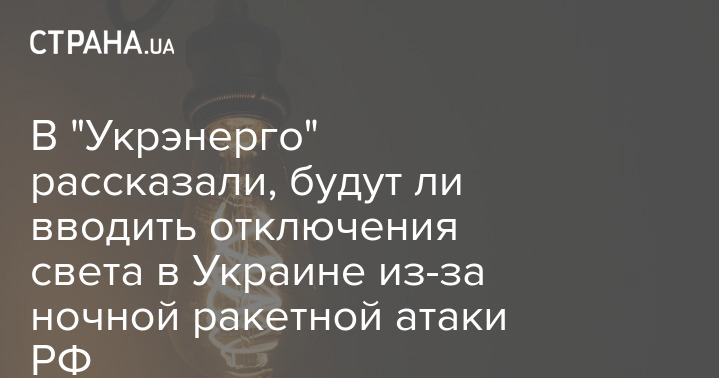В "Укренерго" розповіли, чи вводитимуть відключення світла в Україні через нічну ракетну атаку РФ