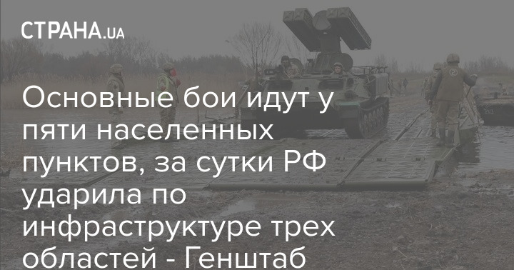 Основні бої йдуть біля п'яти населених пунктів, за добу РФ вдарила по інфраструктурі трьох областей – Генштаб