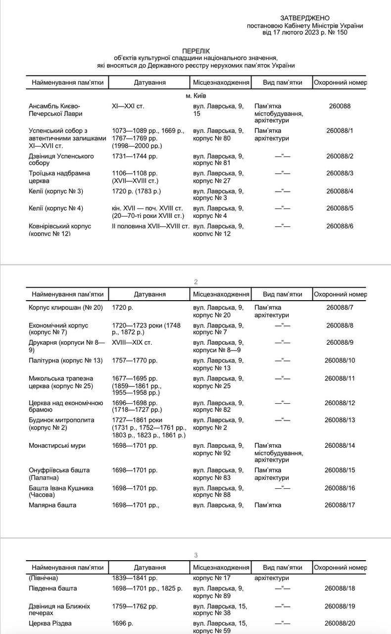 Український уряд вніс ансамбль Києво-Печерської Лаври та низку прилеглих будівель до Державного реєстру нерухомих пам'яток нашої держави.