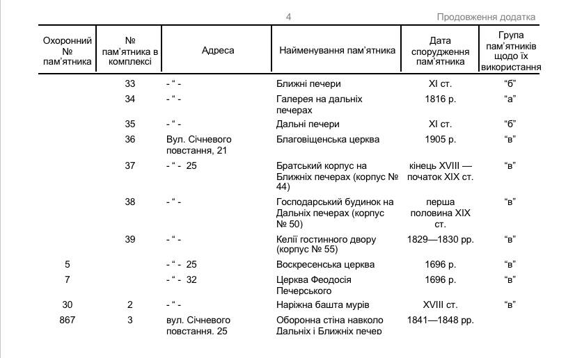 До переліку увійшли будівлі Лаври, келії, церкви, вежі, розташовані на вулиці Лаврська, 9-17, а також вежа на вулиці Теліги, 12.