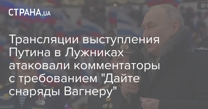 Трансляцію виступу президента РФ Володимира Путіна на мітингу в Лужниках атакували коментатори з вимогою "дати снаряди Вагнеру".