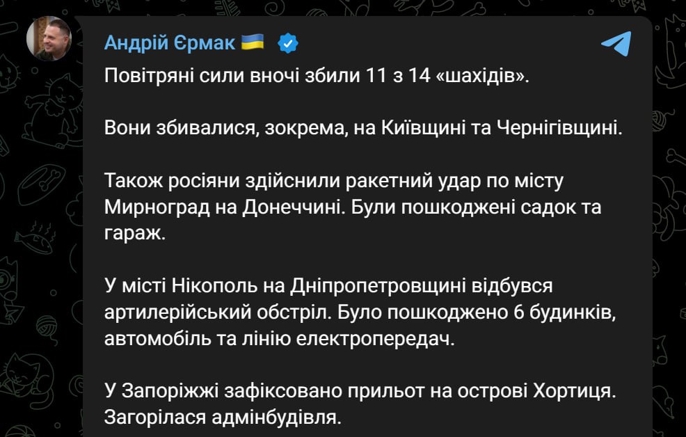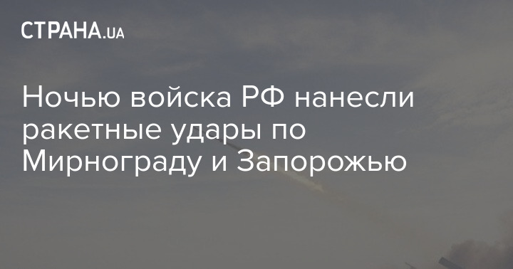 Минулої ночі був ракетний удар по Мирнограду на Донеччині. У Запоріжжі зафіксовано приліт на острові Хортиця. Там спалахнула адмінбудівля.