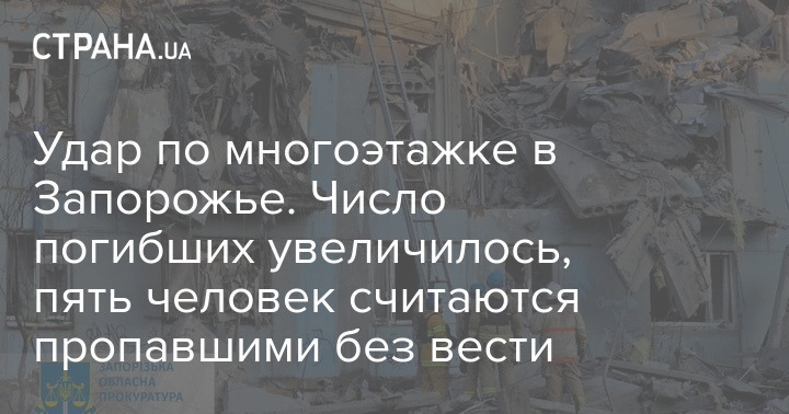 Число загиблих внаслідок нічного удару по Запоріжжю зросло до чотирьох людей. Раніше повідомлялося про трьох загиблих.