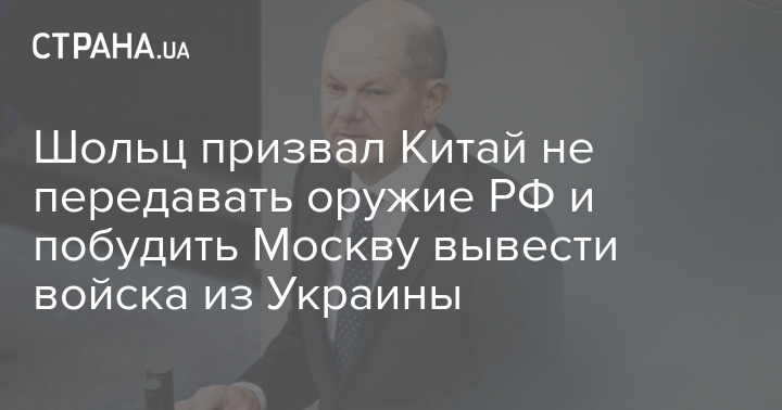Канцлер Німеччини Олаф Шольц закликав Китай не передавати зброю Росії для посилення у війні проти України. До того ж, він попросив Пекін тиснути на Москву, щоб вона відвела свої сили.