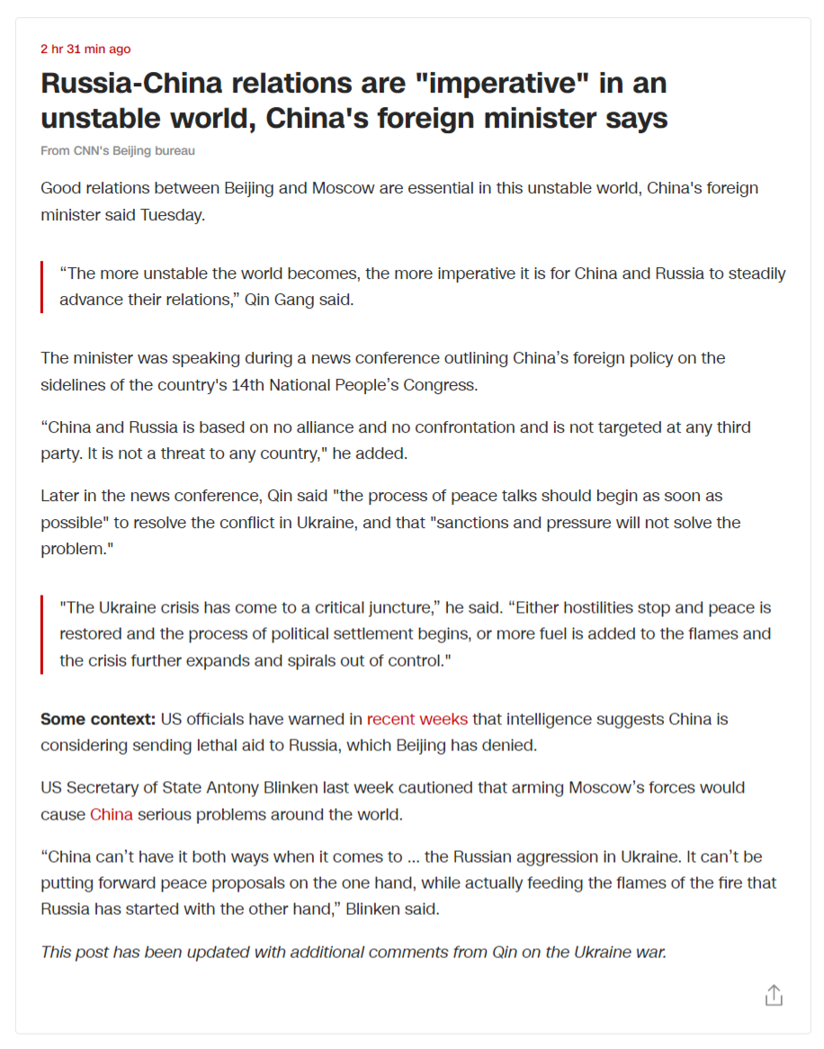 Нагадаємо, у річницю початку війни Китай представив свій мирний план щодо України.