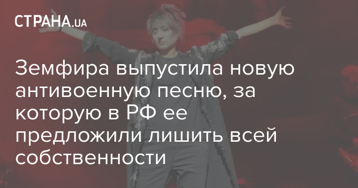 Земфіра випустила нову антивоєнну пісню, за яку в Росії її запропонували позбавити всієї власності