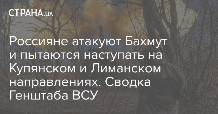 Росіяни атакують Бахмут і намагаються наступати на Куп'янському та Лиманському напрямках. Зведення Генштабу ЗСУ